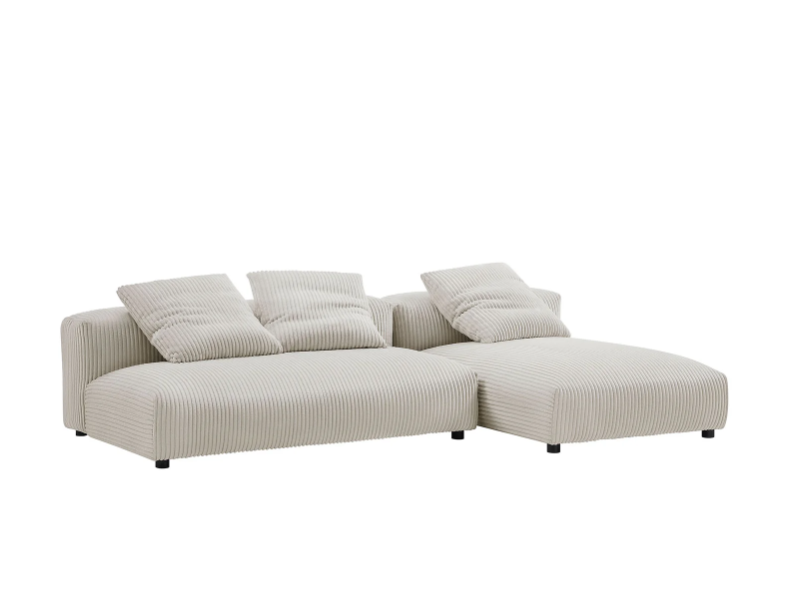 Revel in ultimate comfort and modern style with the Solace Modular Corduroy Modular Sofa with Chaise. This oversized corduroy sectional sofa with chaise is perfect for any living room, offering endless flexibility. Its modular furniture design allows you to change the arrangement to suit the needs of the moment or expand your seating by adding more pieces in the future. Featuring a sturdy frame, dense foam padding, and a sinuous spring support system, the Solace 3 Seater Couch grants a premium seating experience. The comfy corduroy upholstery adds a cozy, casual vibe, making this deep seat sofa a perfect addition to any living space or lounge area. Equipped with non-marking plastic glides and complementing accent pillows, this 2-piece sectional sofa set is both stylish and practical. With no assembly required, you can enjoy immediate relaxation with this L-shaped modular sectional sofa. Loveseat Weight Capacity: 800 lbs.,Chaise Weight Capacity: 500 lbs.